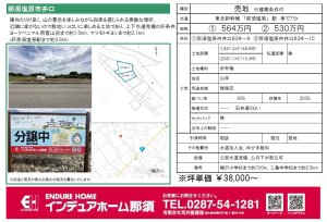 那須塩原市井口 上下水道完備 100坪以上 二区画