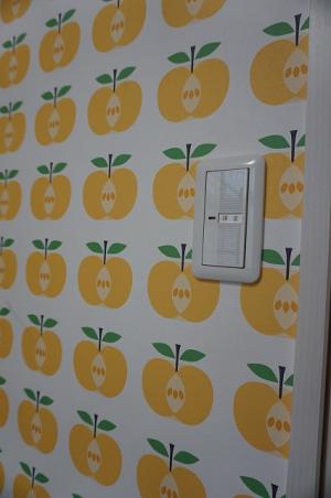 壁紙も奥様の好みでグリーンのハートとリンゴの模様に!