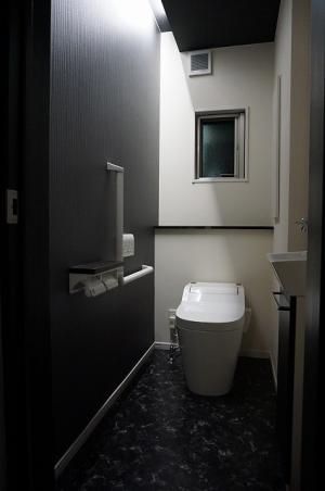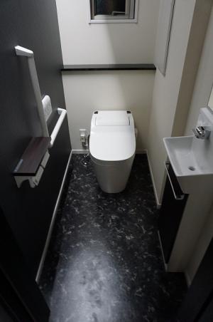 狭い空間でもありますので少しでも広くと考えまして手洗い器部分の壁を薄く造作し手洗い器の奥行きを気にならないようにしました。